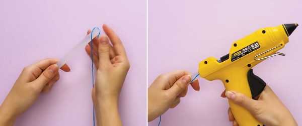 Шаг 1. Заправьте нитку в клеевой пистолет.