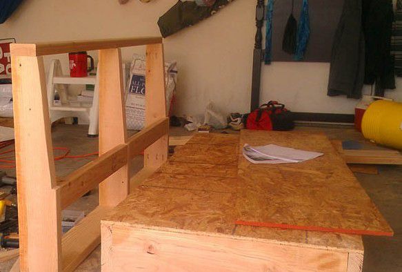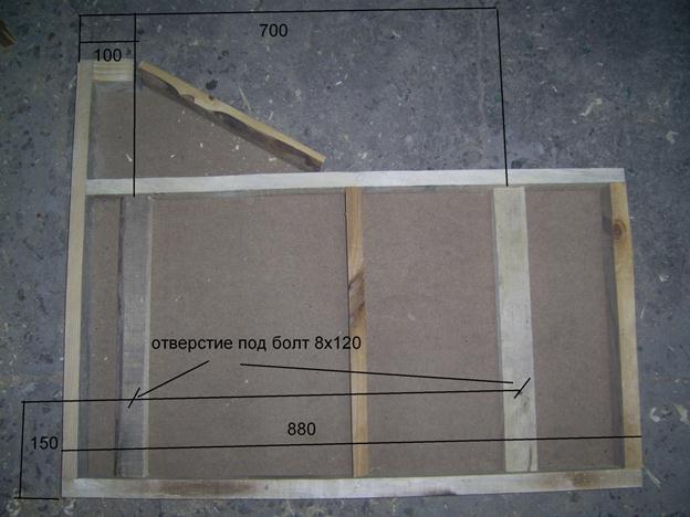 Эта часть нужна для хранения вещей. Его делают из досок толщиной 2,5см и шириной 15см. Потребуется две доски длиной 120см и две – 30см. Дно делают из листа фанеры.