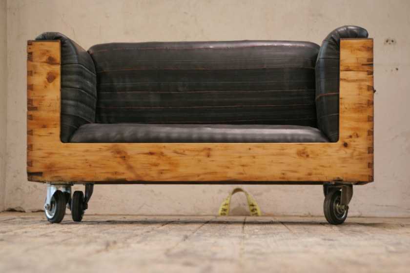 Диваны собирают из листов фанеры, склеивают остовы из пластиковых бутылок. Оригинальным дизайном обладает диван из большого сруба дерева, выполненный своими руками.