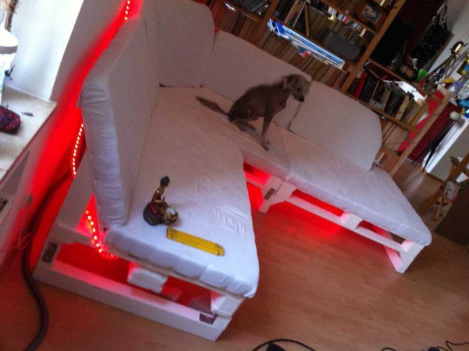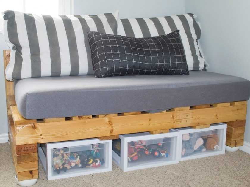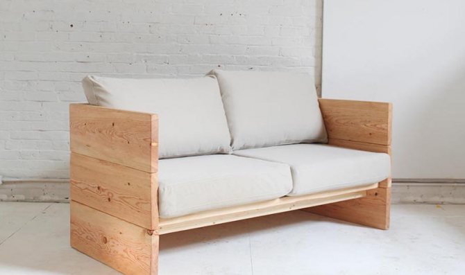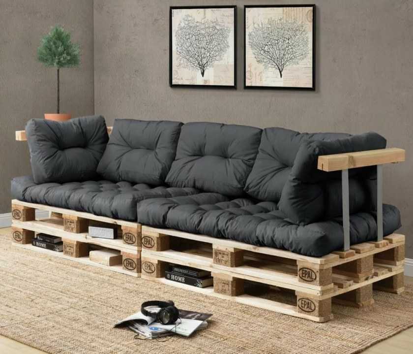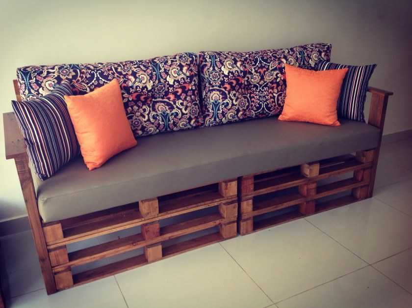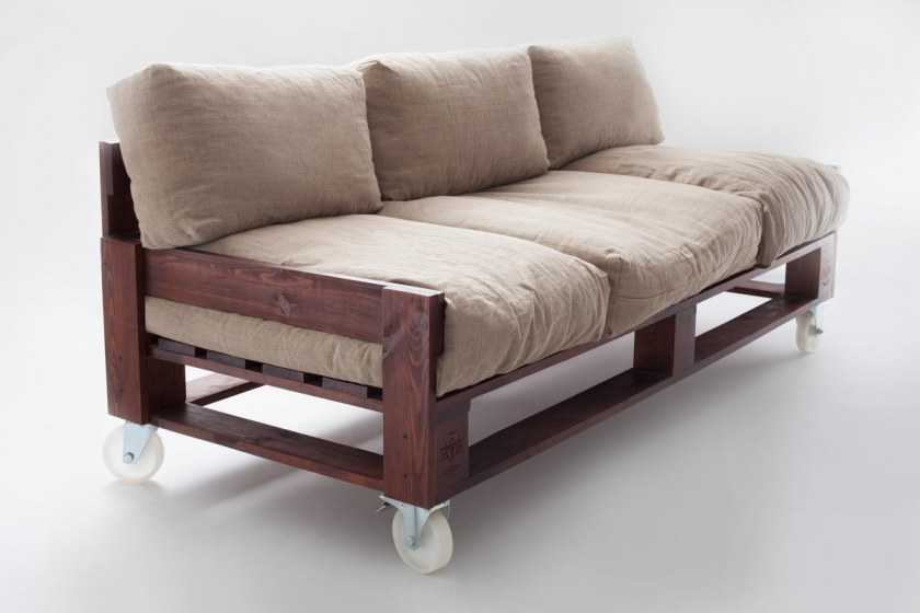 На получившуюся основу укладывают подушки для сиденья и спинки. Получается изготовленный своими руками диван софа.