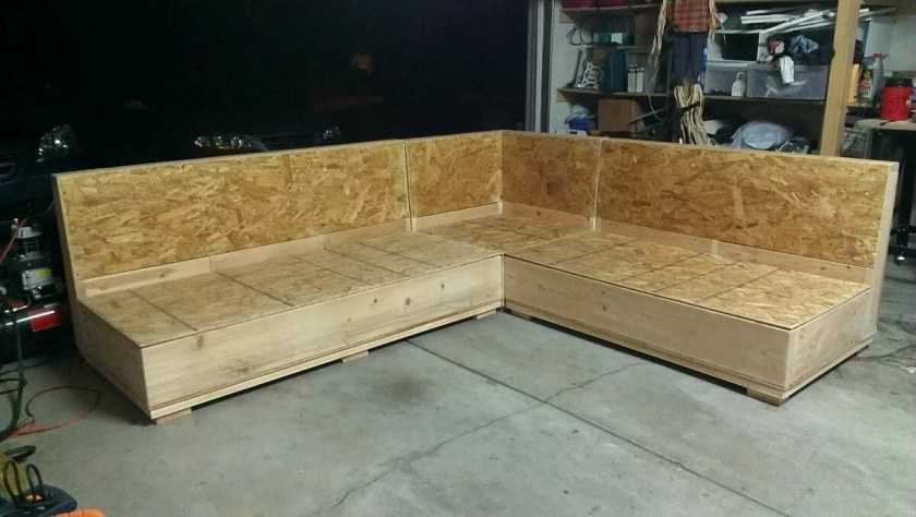 Сделать угловой диван своими руками несложно, но потребуются доски, фанера, деревоплиты, поролон, синтепон и ткань для обивки.