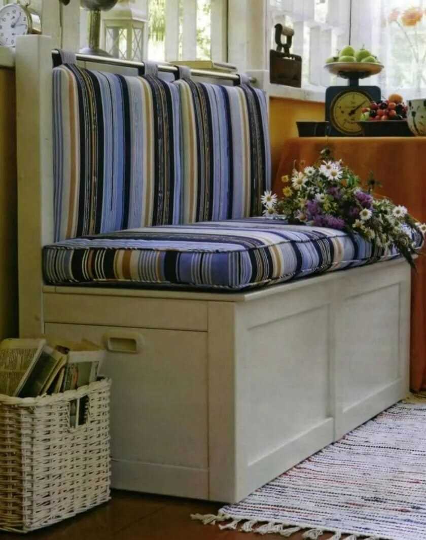 Можно сделать своими руками и кухонный диван уголок. Такой предмет мебели достаточно компактен и, в то же время, удобен.