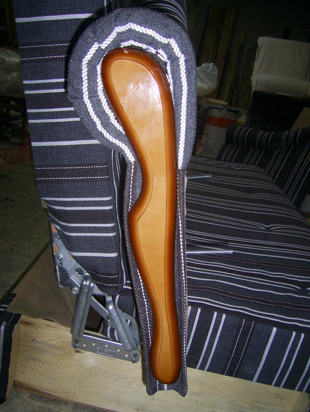 Для этого делают каркас нужного размера, его оборачивают синтепоном, а затем натягивают чехол. Готовый подлокотник крепят саморезами или зажимными мебельными спицами.