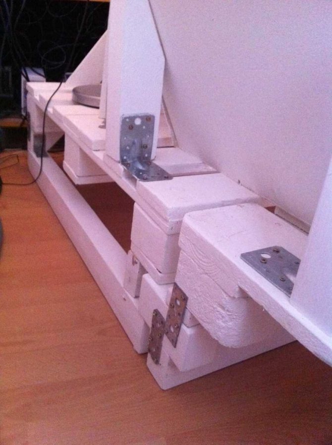 Все узлы дополнительно укрепляются. В результате получается сделанный своими руками диван из поддонов.