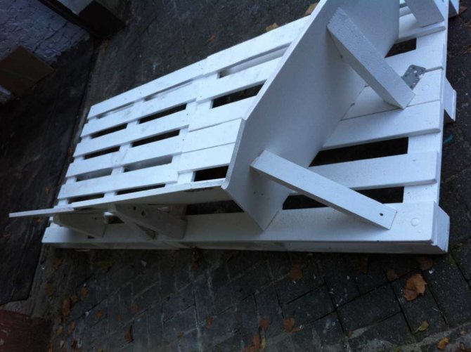 - Распилить полностью подготовленный деревянный поддон, сформировав из его частей сиденье, спинку. Диван, изготовленный из садовых паллетов, может быть без спинки, в этом случае получается интересная тахта в восточном стиле. Такие изделия хороши компактностью, они не занимают много места и могут размещаться в любом уголке приусадебного участка.
