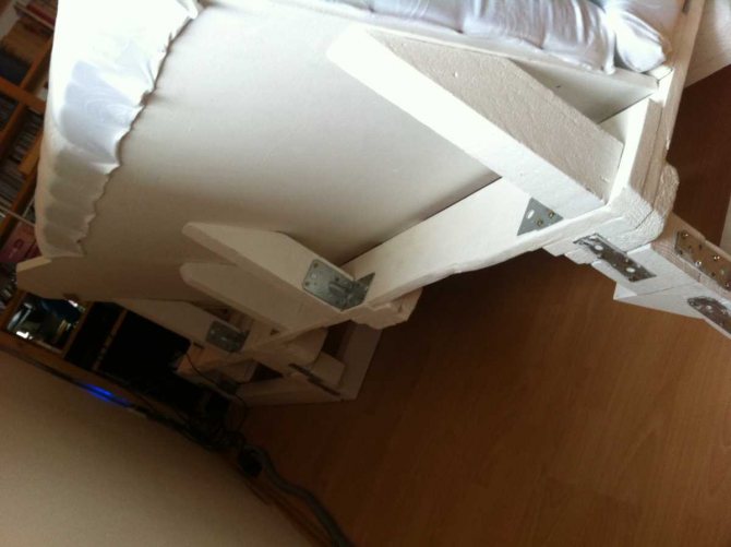 Каркас оклеивают поролоном и синтепоном. Внутрь устанавливают раскладной механизм.