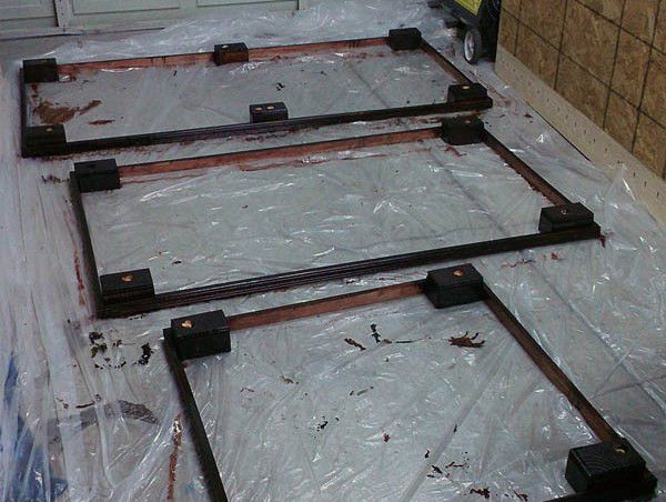К готовым каркасам присоединяют ламели из дерева. Они станут опорой для матраса.