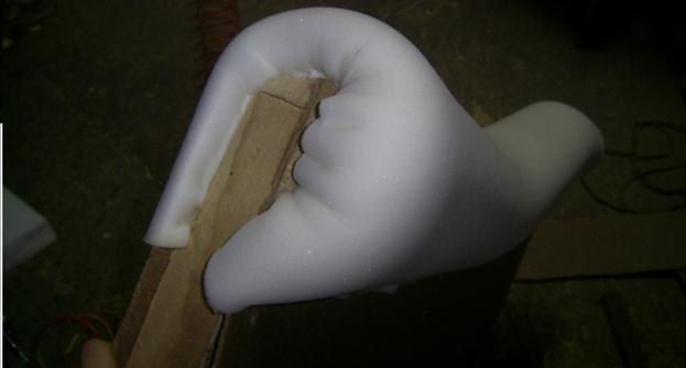 - Выкроить из поролона детали для обшивки каркаса, прикрепить их на свои места.