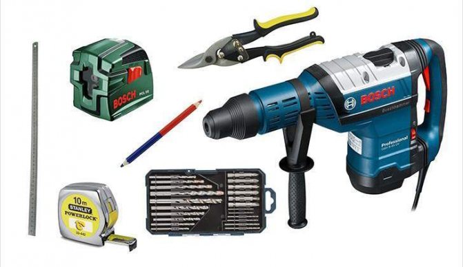 - Для крепления элементов конструкции понадобятся перфоратор, молоток и шуруповерт.