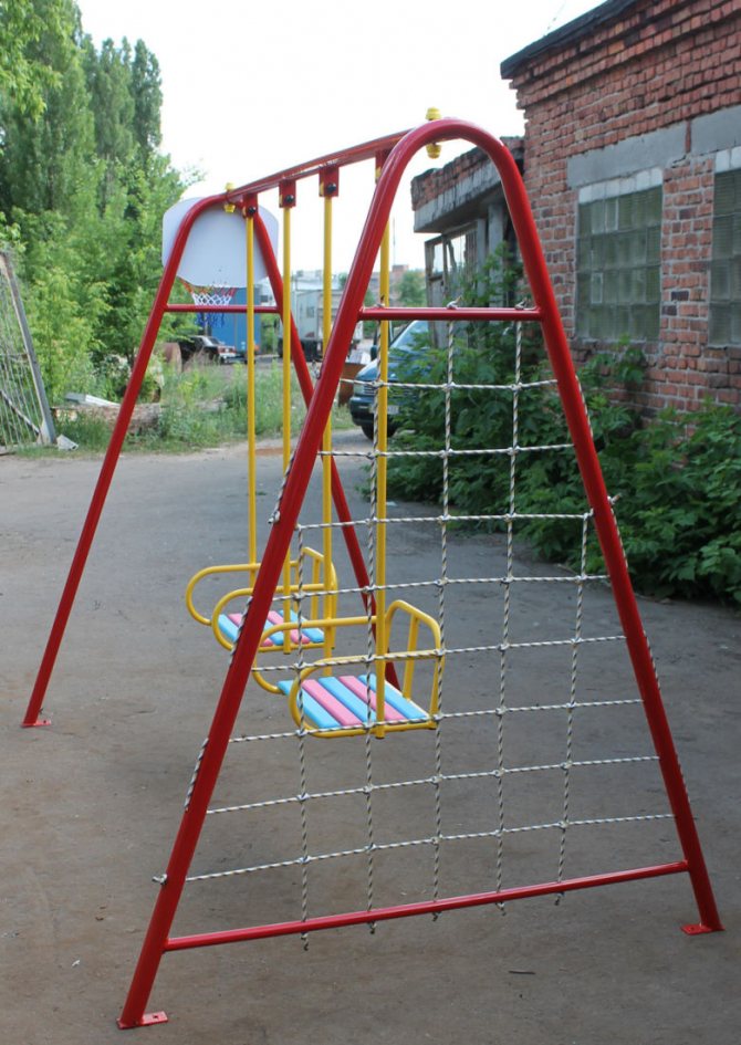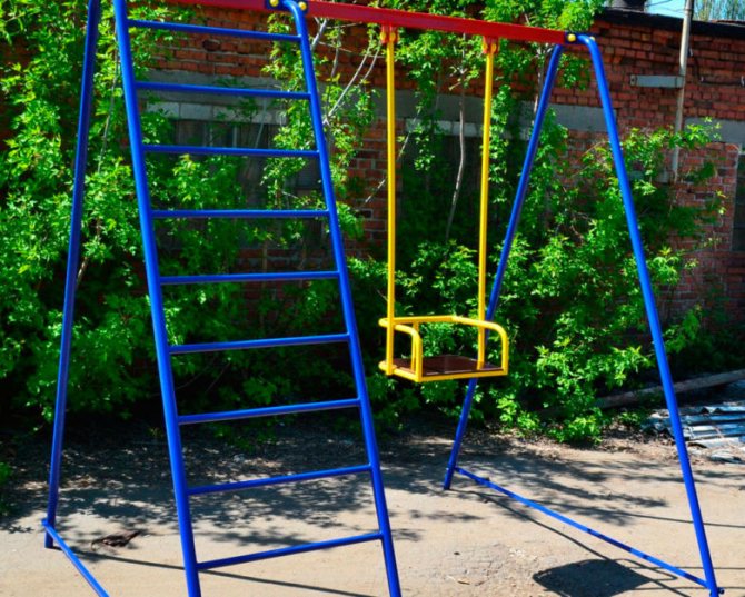 - Одноместного типа качели не должны иметь жесткие подвесы из металла.