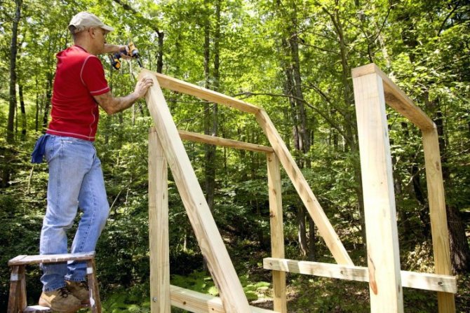 - закрепите поперечного типа брус на вершинах боковых опорных конструкций;
