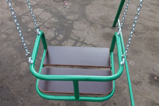 Конструкции из металла покупаются для качелей, которые ставятся на детских общественных площадках. Однако аттракционы с металлической сидушкой не привлекают детей, когда жарко (они быстро нагреваются) или охлаждаются (зимой). Поэтому для домашних качелей этот вариант не подойдет. Однако если вы хотите выбрать именно металлическое сиденье, то можно попробовать скомбинировать железо с деревом.