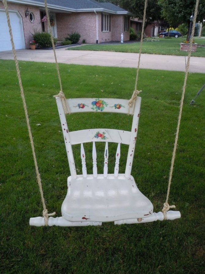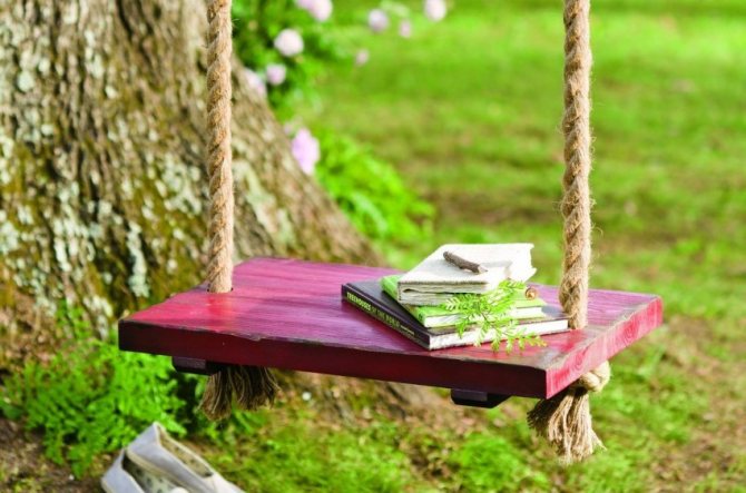 - подвешивают на веревочки качели.