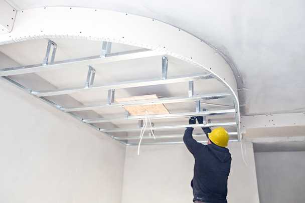 | 3. Монтаж каркаса второго (и последующих) уровней | Профили UD и CD, ножницы по металлу, саморезы по металлу, шуруповерт, крабы (для соединения профилей в одной плоскости), гнутые профили (для криволинейных форм) | Создавайте каркас второго уровня, опирая его на первый. Для криволинейных форм используйте надрезанные профили или специальные гнутые. |