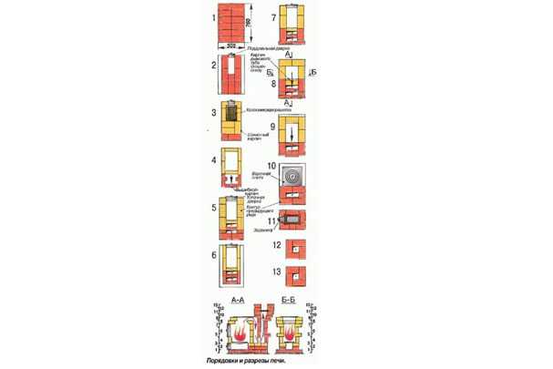 Важно отметить, что для создания этой конструкции не нужны какие-либо специальные навыки. Если вы когда-либо собирали домик из игрушечных кубиков, то сможете представить себе процесс. Конечно, в данном случае все будет немного сложнее, но не настолько, чтобы это было непосильной задачей. Главное — внимательно следить за порядовкой. Это схема укладки кирпичей по рядам, которая играет ключевую роль в прочности конструкции и других характеристиках печи.