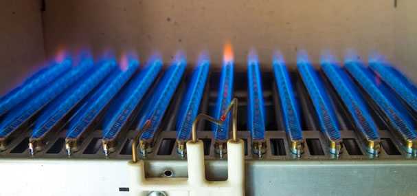 - Горелка. Это система, состоящая из нескольких линий с отверстиями, что обеспечивает равномерный нагрев. К горелке также относятся запальный фитиль и место подачи газа, так как все эти элементы работают вместе, обеспечивая наличие пламени и передачу тепловой энергии воде.