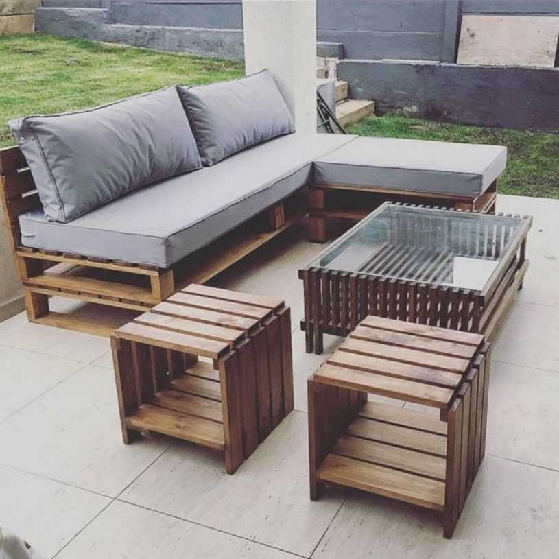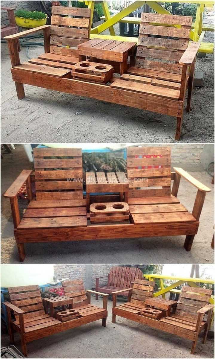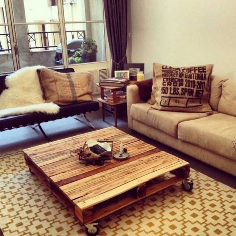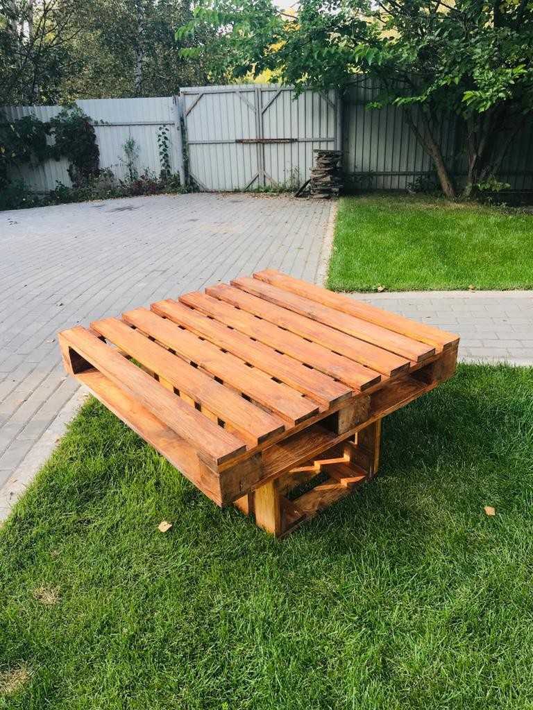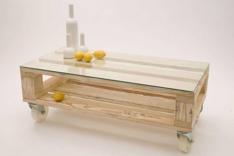 Сделай своими руками самый простой столик всего из нескольких паллет, поставленных одна на другую. Можешь расширить его или сделать практичную многоуровневую конструкцию. Удобная сплошная столешница получится из стеклянной пластины.