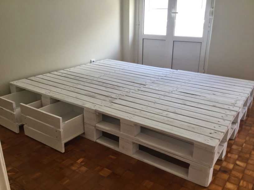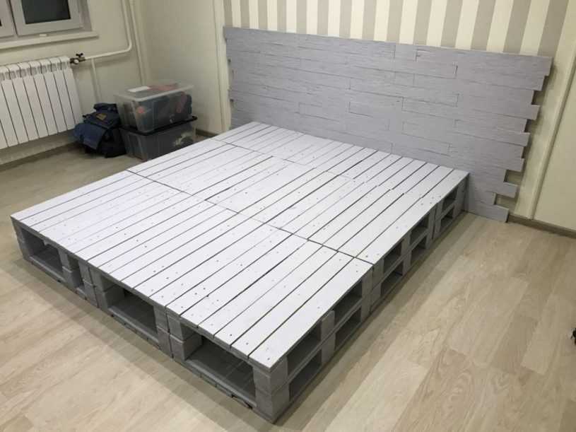 Двуспальную кровать изготавливают из двух «односпалок». И для нее надо соответственно десять поддонов.
