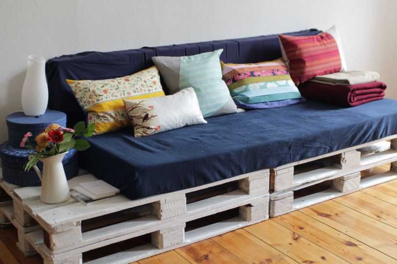 - дешево; кроме поддонов потребуются и другие расходные материалы (лак, краска, матрасы или мягкие тканевые сиденья, колесики), но даже с их стоимостью в конечном счете самодельная мебель обойдется выгоднее покупной;