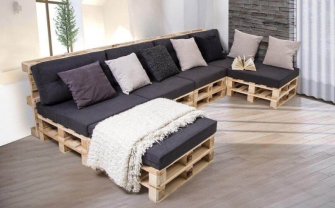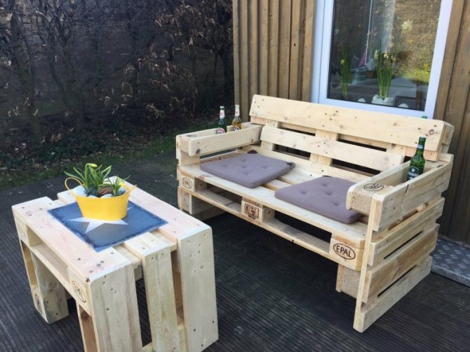- натурально; паллеты не идут ни в какое сравнение с материалами, из которых изготавливается новая мебель (ДСП, МДФ); никаких вредных пропиток, клея, смол, фенола;
