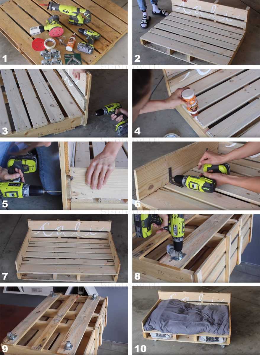 Лежанку для любимца можно изготовить самостоятельно, используя ненужные поддоны. Такой тип материалов часто остается после ремонта. Если такового не имеется, всегда можно приобрести несколько в ближайшем строительном супермаркете.
