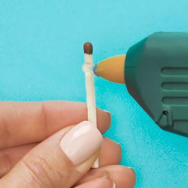 Шаг 1. Нанесите каплю клея по краю спички, отступив 0,5 см от головки.