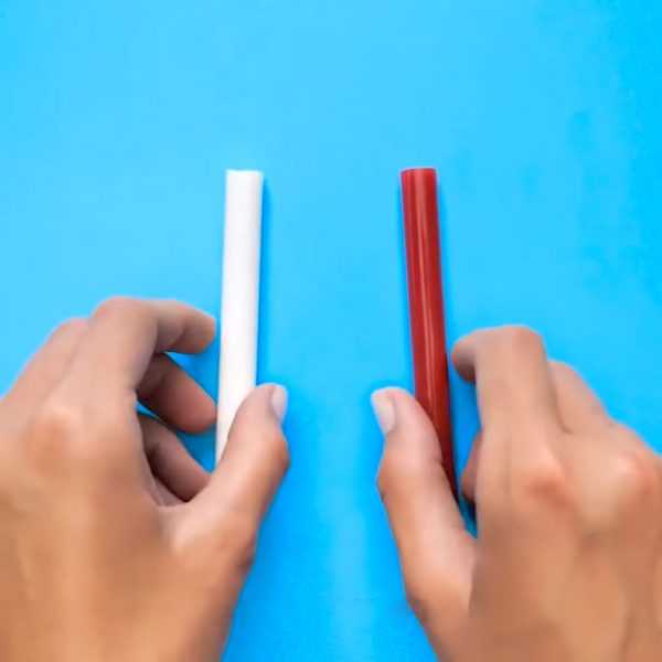 Шаг 1. Возьмите два клеевых стержня различных оттенков.