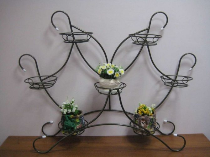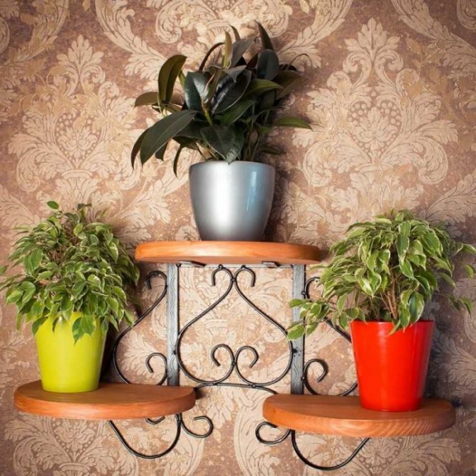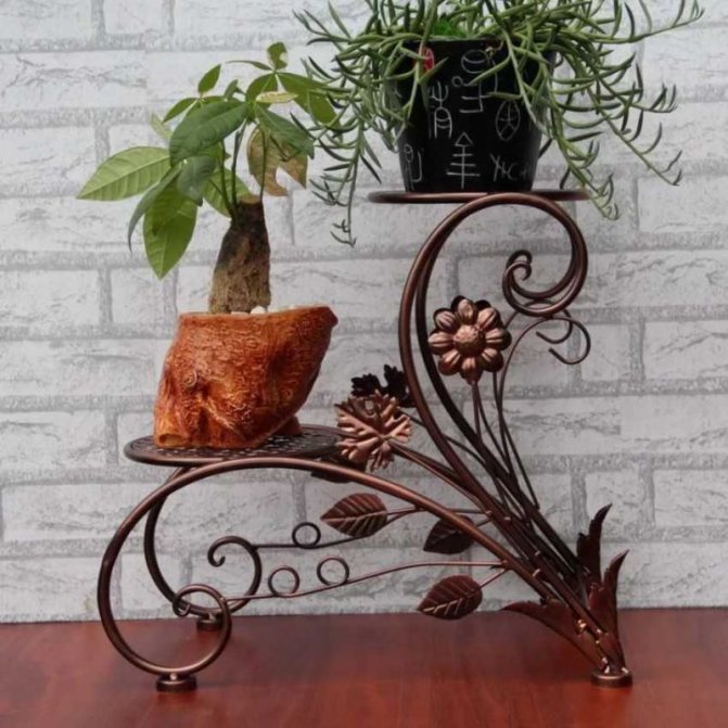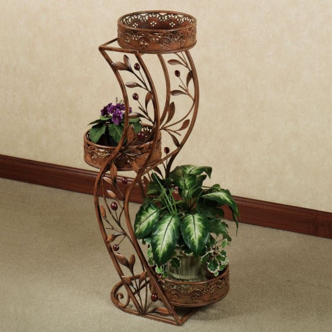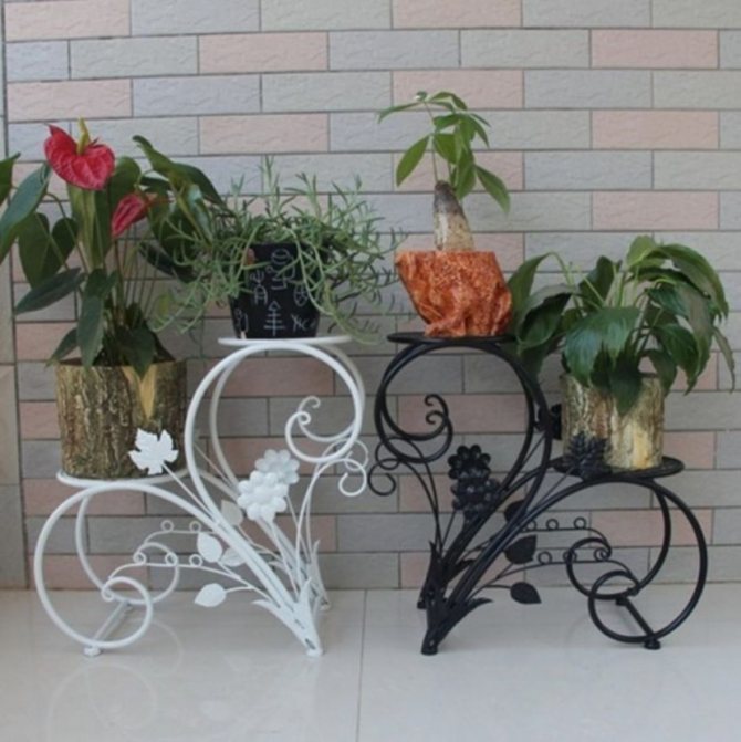 Кованые конструкции для растений могут быть как напольными, так и настенными. Оба решения довольно элегантны и удобны. Выбор зависит от ваших предпочтений. Но помните, что металлические подставки требуют больших финансовых затрат, чем деревянные.