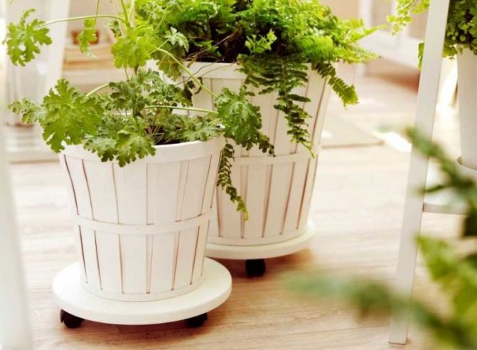 Эта несложная деревянная полка просто необходима, если у вас в доме есть большое растение. С ней исчезнет проблема, как сдвинуть тяжелый горшок с места во время уборки.