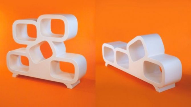 - Пластик. Для изготовления полок используются пластиковые трубы, листовой пластик (прозрачный, цветной, гладкий, фактурный) и даже подоконники из ПВХ.