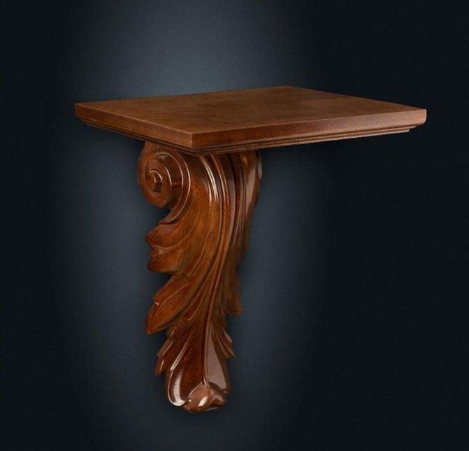 - Древесина. Полки из этого прочного экологичного материала, при правильной сборке, способны выдерживать большие нагрузки. Дерево легко обрабатывать, с изготовлением полок простых конструкций могут справляться даже новички. Опытные мастера изготавливают деревянные полки, украшенные резьбой, инкрустацией, росписью. Без профессиональной подготовки можно красиво декорировать полку в технике декупаж.