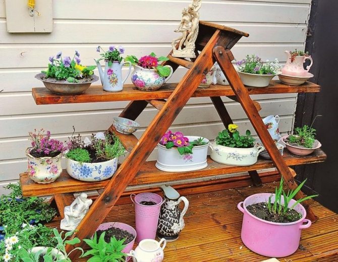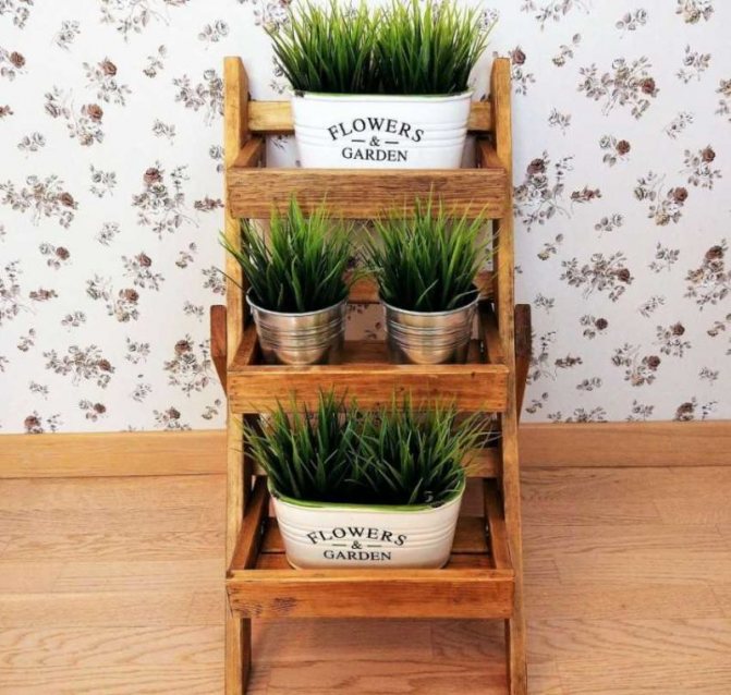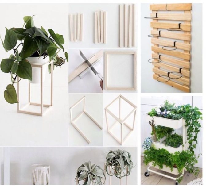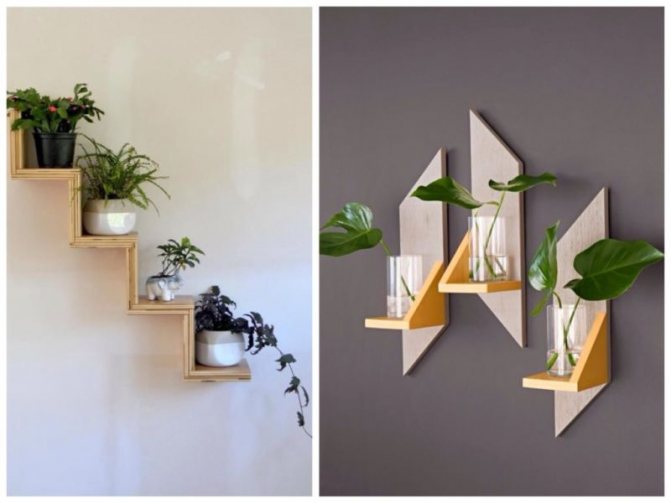 Для изготовления оригинальных конструкций цветочных полок можно использовать такие идеи: