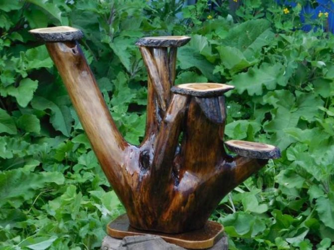 - полка выполняется в виде ствола дерева, на подставках размещаются растения-лианы, напоминающие ветви деревьев с листьями;