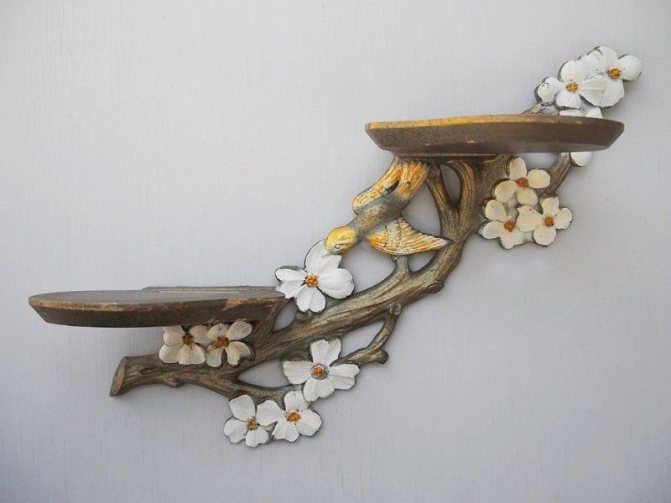 - Используя технику искусственного состаривания, можно придать полке ретро вид.
