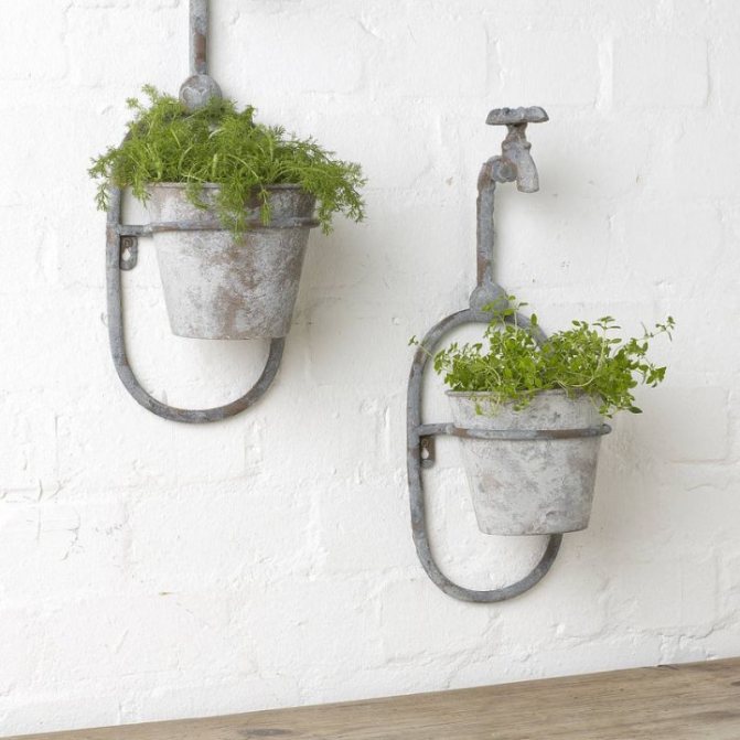 Из металла делаются держатели для горшков, которые затем крепятся на деревянные дощечки.