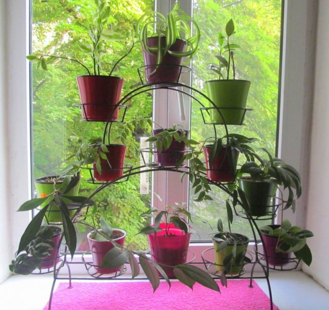 Если вы обладатель большой цветочной коллекции, то выбирайте широкие и многоярусные напольные стеллажи