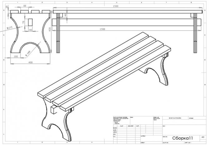 - Деревянные доски 1500 на 150 мм, толщиной 35-40 мм. Три заготовки для сиденья и две для спинки.