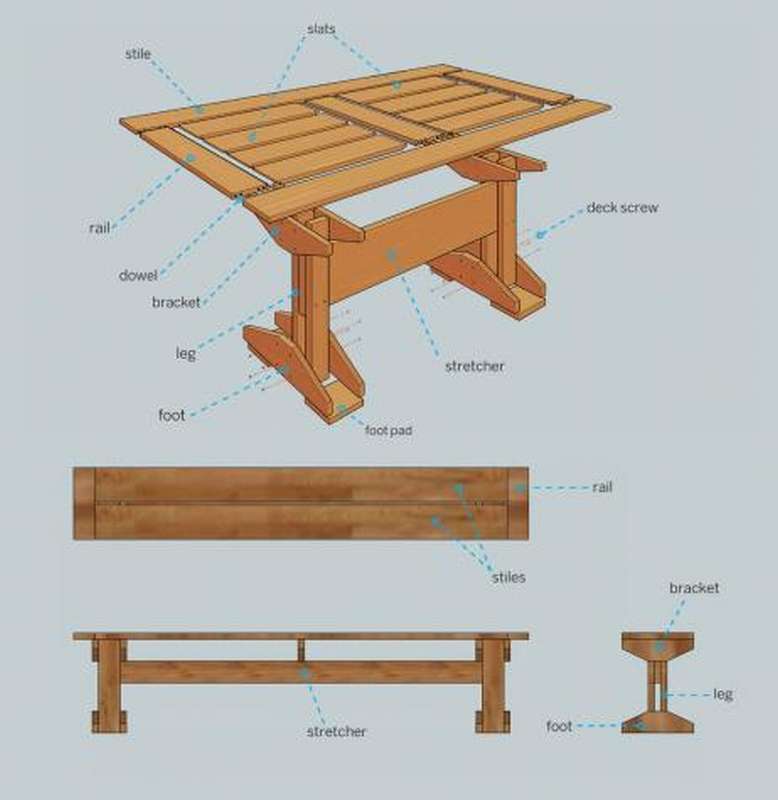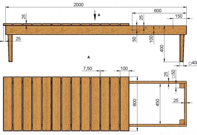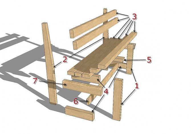 Необходимо только шесть дощечек, схожих по масштабам. Далее приведен чертеж такой лавки.
