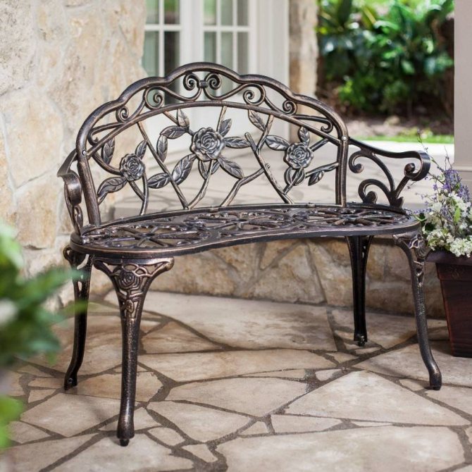 Из этого материала можно соорудить изящные, почти невесомые кованые изделия, которые станут украшением любого участка, однако хозяину надо быть знакомым с методом холодной или горячей ковки. Чтобы конструкция была надежной, мастеру потребуется сварочный аппарат и навыки работы с ним. Минус таких конструкций — высокий коэффициент теплопроводности материала: они ледяные в холод и горячие в жару. Плюс металла — возможность его комбинации с другими материалами: самый лучший его «сосед» — дерево.