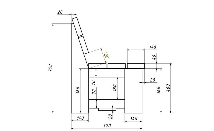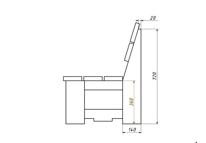 Длина сиденья и спинки будет равняться 1500 мм. На этой мебели могут сразу комфортно разместиться три человека. Высота сиденья — 450 мм, высота спинки — 900 мм. Спинку желательно расположить под углом 18-20 градусов. Ширина сиденья равняется 400 мм.