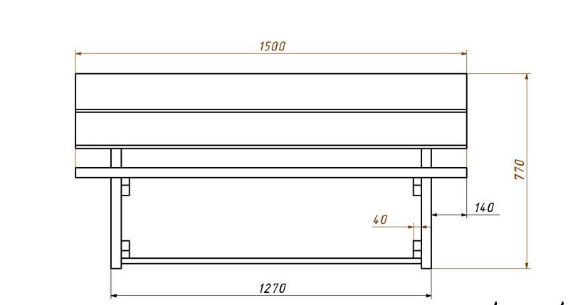 - 1200 мм. При такой длине на скамейке поместятся 2 человека. Как правило, такие изделия комплектуются двумя боковыми опорами и не имеют подлокотников.