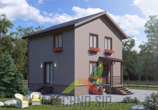 Дом из сип-панелей Stone SIP в Московской области, Чеховский район, д. Кудаево, КП Сосновый берег128 м2