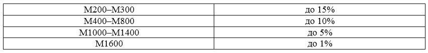 - низкая прочность — М300–М600. Используется для тех же целей, что и предыдущий тип,